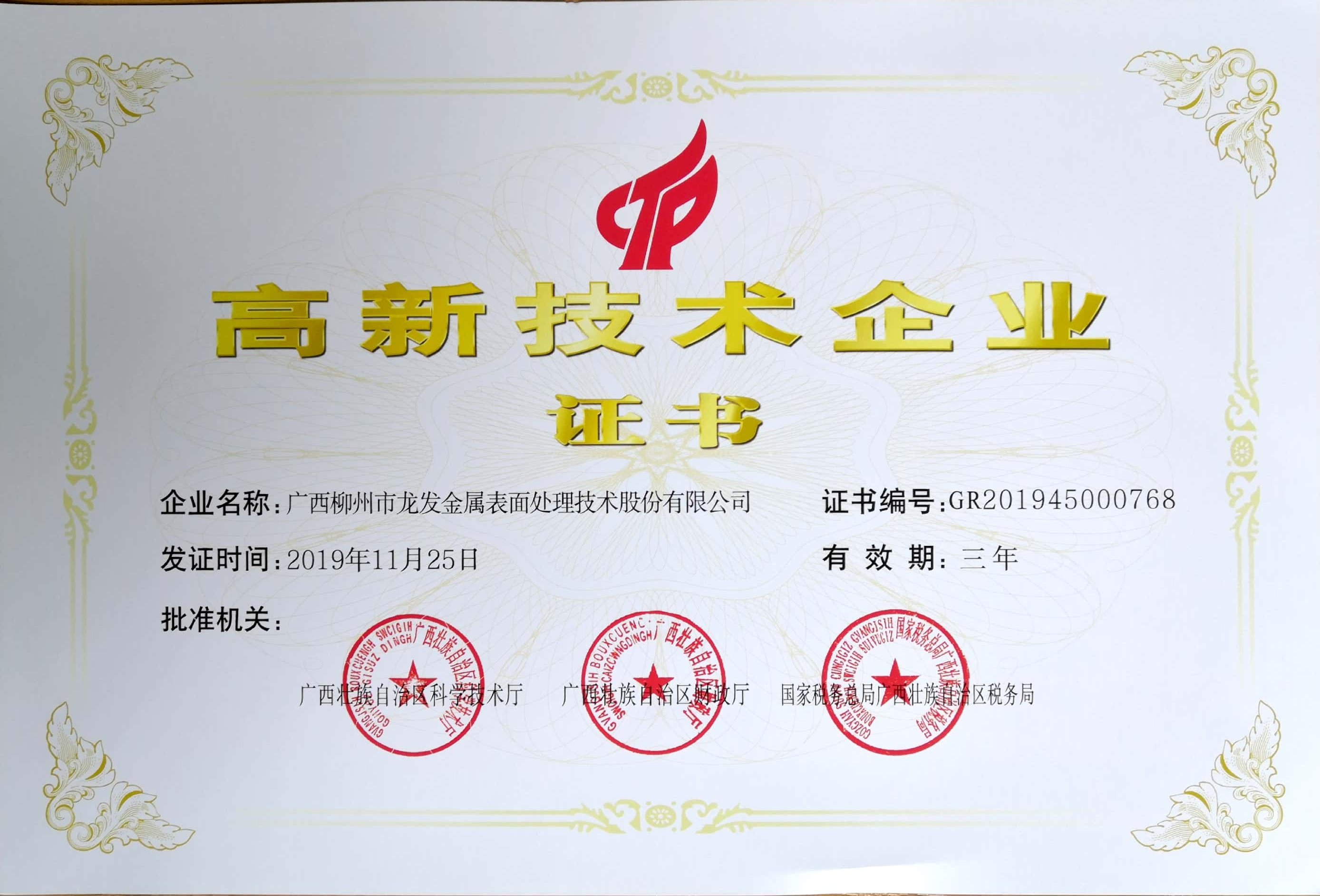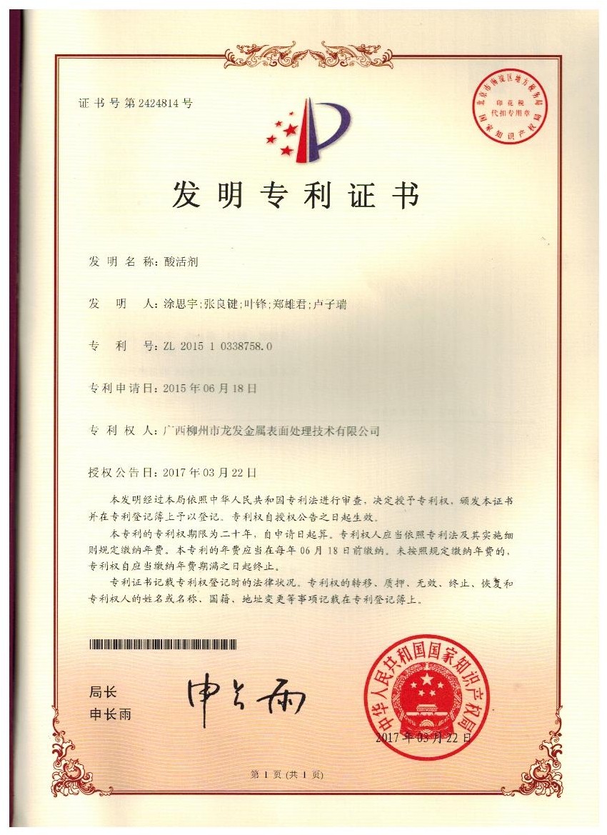 廣西柳州市龍發(fā)金屬表面處理技術(shù)股份有限公司