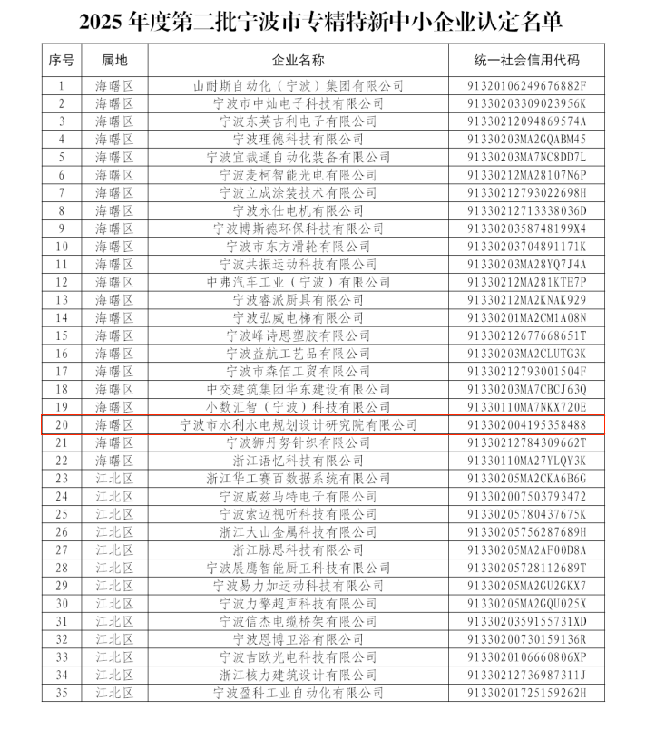 【喜報】我院成功獲評2025年度寧波市專精特新中小企業(yè)