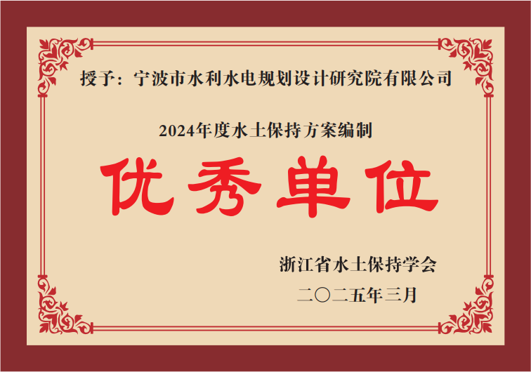 近日,浙江省水土保持學(xué)會(huì)第三屆理事會(huì)第三次理事會(huì)議召開,會(huì)議對(duì)2024年度生產(chǎn)建設(shè)項(xiàng)目水土保持優(yōu)秀單位等項(xiàng)目進(jìn)行現(xiàn)場(chǎng)通報(bào)并表彰。我院獲得“2024年度水土保持方案編制優(yōu)秀單位”榮譽(yù)稱號(hào)等3項(xiàng)榮譽(yù)。