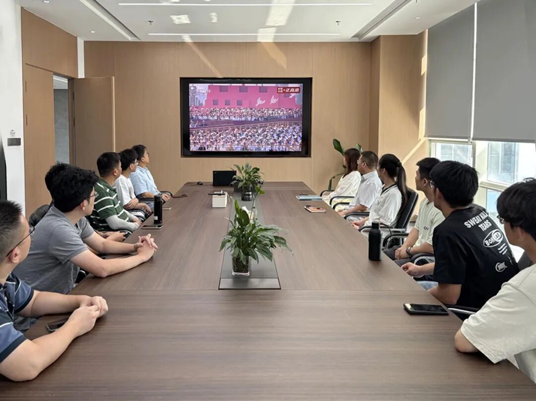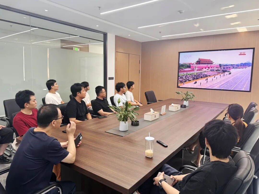 新大樓各層會議室現(xiàn)場氣氛莊重,全體黨員及職工認真聆聽習近平主席重要講話。當閱兵儀式開始時,大家不時為受閱部隊的雄壯陣容和先進裝備贊嘆鼓掌,由衷為祖國日益強大的綜合國力與國防力量感到自豪。觀看結束后,黨員們深受震撼、心潮澎湃,一致認為這場閱兵不僅展示了國威軍威,更彰顯了中華民族百折不撓、團結奮進的偉大精神。