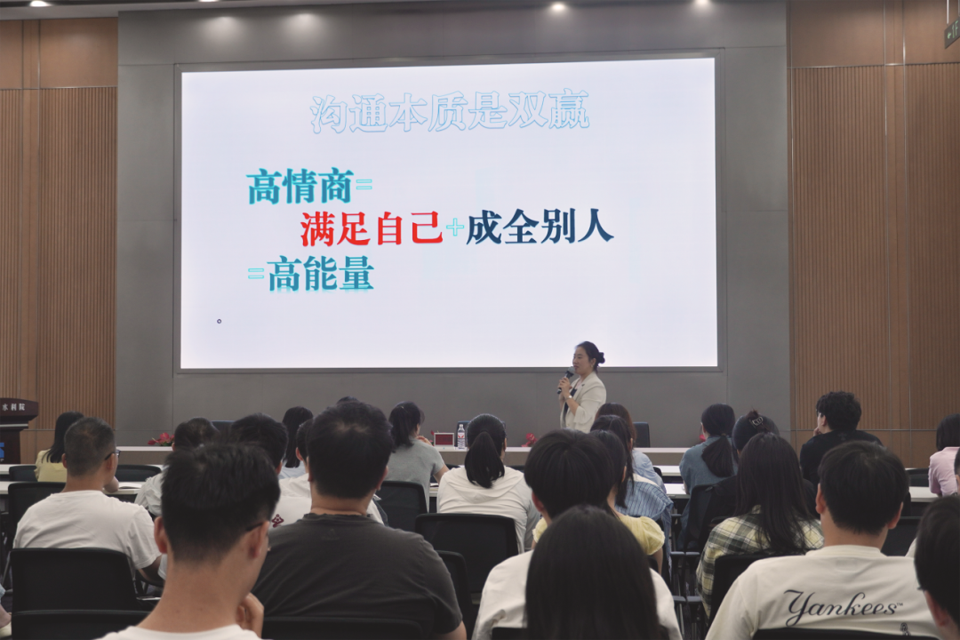 為提升員工的溝通能力與團(tuán)隊(duì)協(xié)作效率,2025年9月18日下午,我院工會在院一樓報告廳舉辦了一場主題為“從自我激勵到高效協(xié)同的溝通法則”專題講座。本次講座聚焦職場溝通,特邀禮儀專家、教育學(xué)碩士陳瑛擔(dān)任主講。我院各部門近70名員工積極參與,現(xiàn)場氣氛熱烈。