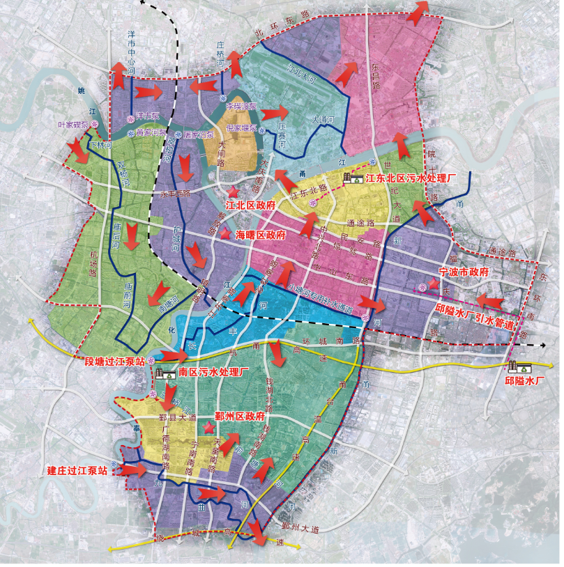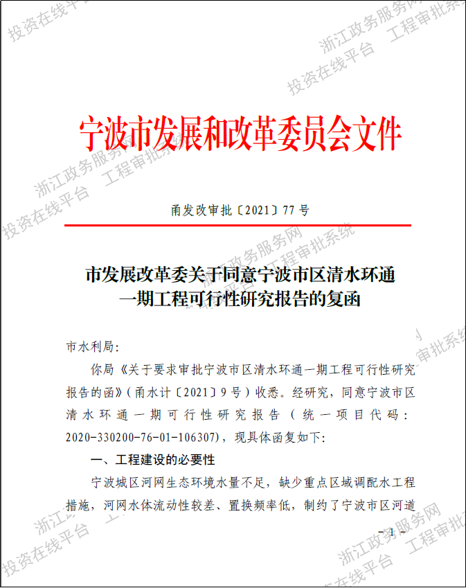 寧波市區(qū)清水環(huán)通一期工程西起機場高架、東至福慶路,北起北環(huán)高架,南至鄞州大道,面積合計約146km2,是寧波市區(qū)重要的河網(wǎng)引配水工程,亦是緩解老城內(nèi)澇壓力的有力舉措。為提升河網(wǎng)環(huán)境用水量、促進(jìn)水系互聯(lián)互通、改善水體流態(tài),寧波市區(qū)清水環(huán)通一期工程創(chuàng)新性的引入“精準(zhǔn)補水、高速水路”的計理念,切實解決了寧波城區(qū)現(xiàn)狀大水漫灌的河網(wǎng)調(diào)水模式下調(diào)水效率低下、補水針對性不強等痛點、難點問題。該工程可研報告于2021年5月獲寧波市發(fā)展和改革委員會批復(fù)。