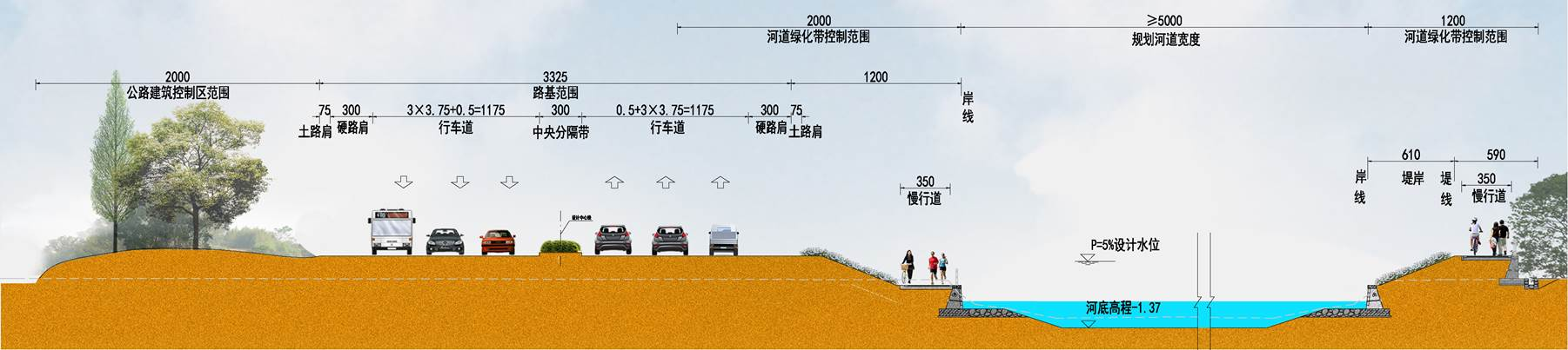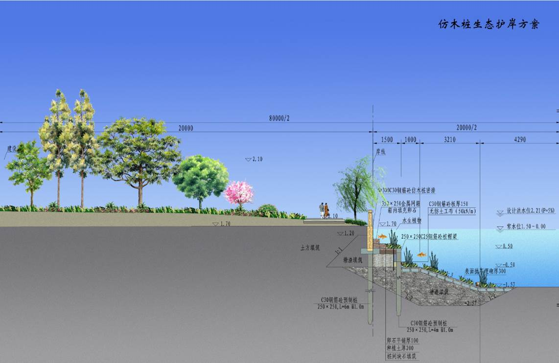 工程位于海曙區(qū)西側(cè),南起鄞江,北至姚江,為實(shí)現(xiàn)對(duì)海曙西側(cè)山區(qū)洪水的攔截,共整治河道長24km,建設(shè)閘站40座,閘門總凈寬554m,泵站22m3/s,改建新建橋梁42座。其中有3.5km與G228國道并線,為協(xié)調(diào)國道與河道之間用地布局,通過優(yōu)化河道斷面型式和堤線線位,實(shí)現(xiàn)了對(duì)土地的集約利用,打造一條海曙西部交通和河道的靚麗風(fēng)景線。