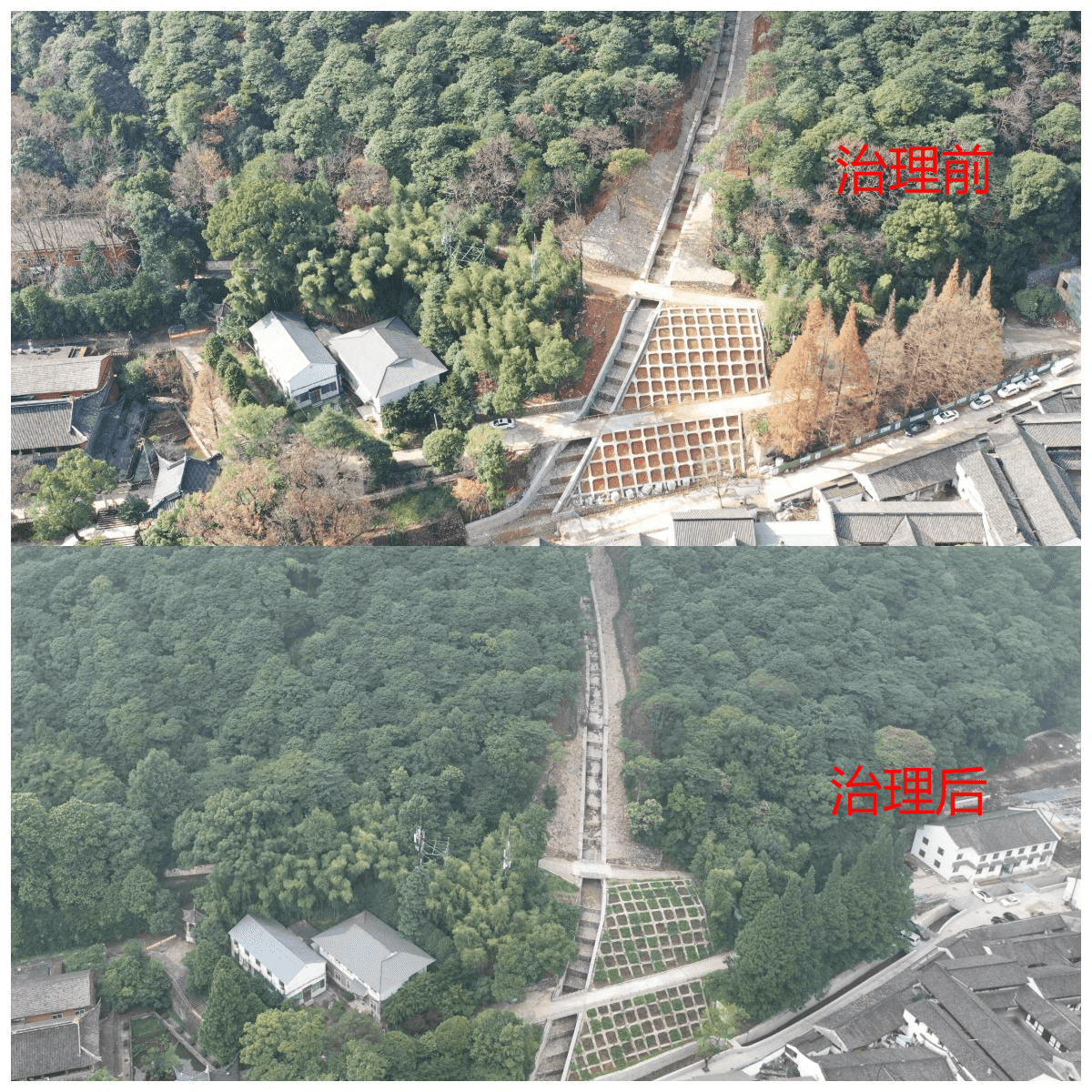 經(jīng)綜合治理后,千年古寺煥發(fā)新機,且在臺風(fēng)“煙花”過境寧波時有效發(fā)揮水土保持功能,避免了泥石流等地質(zhì)災(zāi)害的發(fā)生,不僅維護了當?shù)厣鷳B(tài)環(huán)境穩(wěn)定,更保護了當?shù)厝罕姷纳敭a(chǎn)安全。