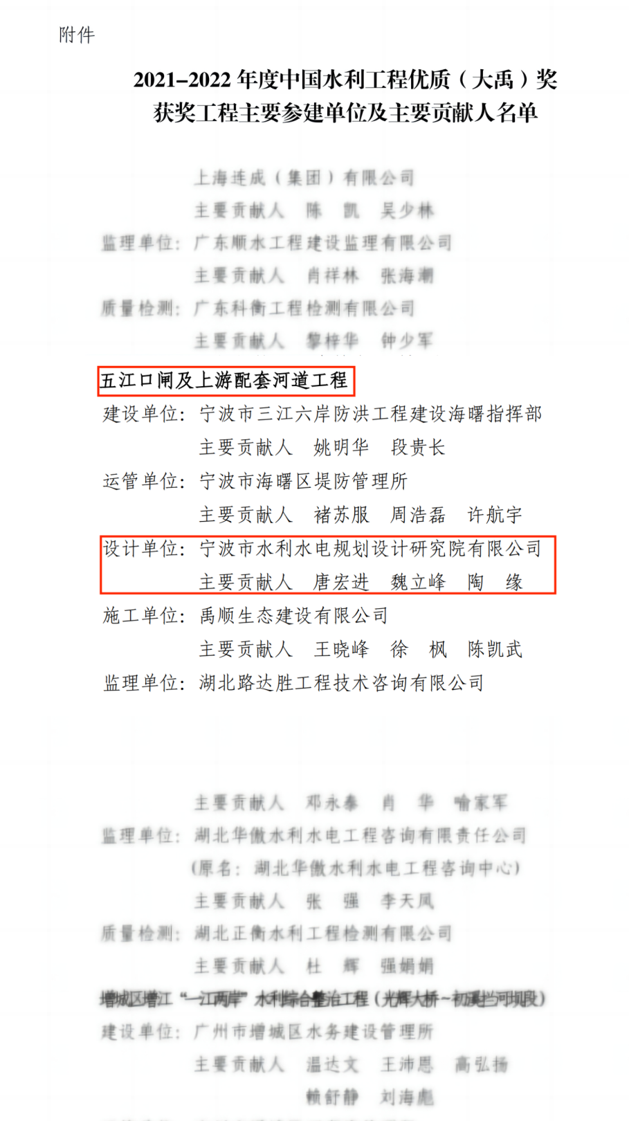 近日,2021年~2022年度中國(guó)水利工程優(yōu)質(zhì)(大禹)獎(jiǎng)獲獎(jiǎng)名單出爐,36個(gè)獲獎(jiǎng)工程中,我院成功鎖定一席!此次我院設(shè)計(jì)的五江口閘及上游配套河道工程,是我院第七個(gè)榮獲大禹獎(jiǎng)的項(xiàng)目。