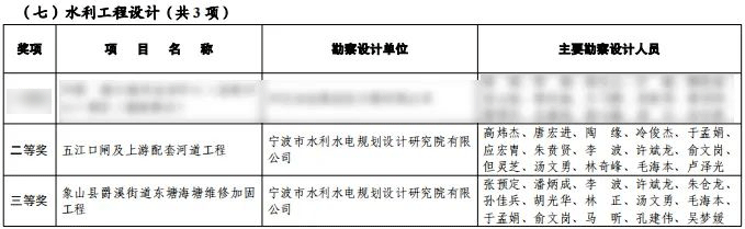 近日,2023年度寧波市優(yōu)秀勘察設(shè)計(jì)獎評選結(jié)果出爐,我院設(shè)計(jì)的五江口閘及上游配套河道工程和象山縣爵溪街道東塘海塘維修加固工程分別榮獲水利工程設(shè)計(jì)組二等獎和三等獎!