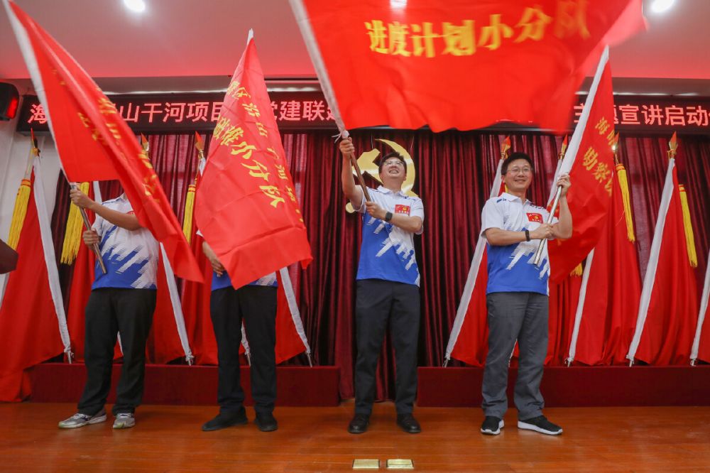 為響應(yīng)“把支部建在項目中,把黨旗插到工地上”的號召,充分發(fā)揮黨建在項目推進中的引領(lǐng)作用,為項目攻堅破難、順利實施找準(zhǔn)“定盤星”、把穩(wěn)“方向盤”,“沿山干河項目臨時黨支部”正式揭牌,并成立了勘察設(shè)計、技術(shù)破難、融資保障、進度計劃、征遷攻堅等五個小分隊,同時向五位主題宣講員頒發(fā)了聘書。我院工程院院長高煒杰入選臨時黨支部支委成員,何國華作為勘察設(shè)計小分隊代表接受授旗,何國華、陳欣、褚洪康受聘為主題宣講團成員。