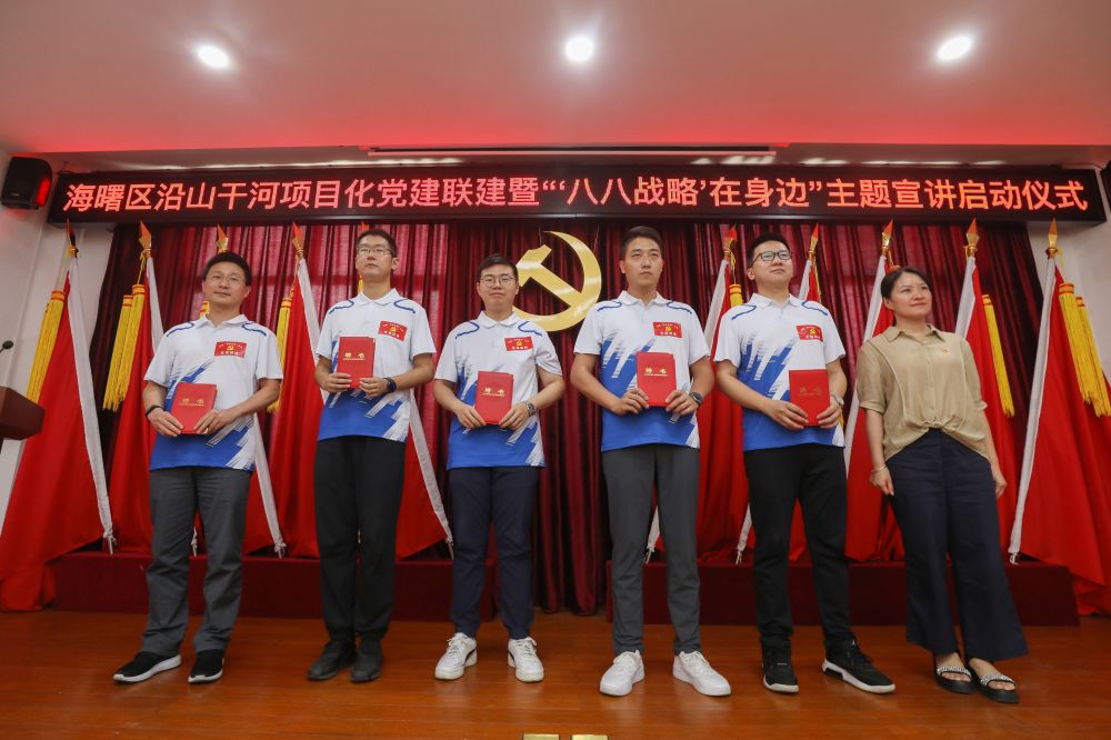 近日,海曙區(qū)直機關(guān)工委和區(qū)水利局以“五最黨建”為引領(lǐng),在集士港鎮(zhèn)岳童村文化禮堂舉行沿山干河項目化黨建聯(lián)建暨“‘八八戰(zhàn)略’在身邊”主題宣講啟動儀式,我院作為沿山干河項目參建單位、活動的承辦方參與了啟動儀式。我院黨總支書記、副院長王洪霞,工程設(shè)計項目組及青年黨員代表十余人參加了上述活動。