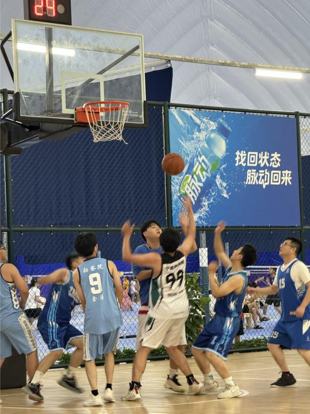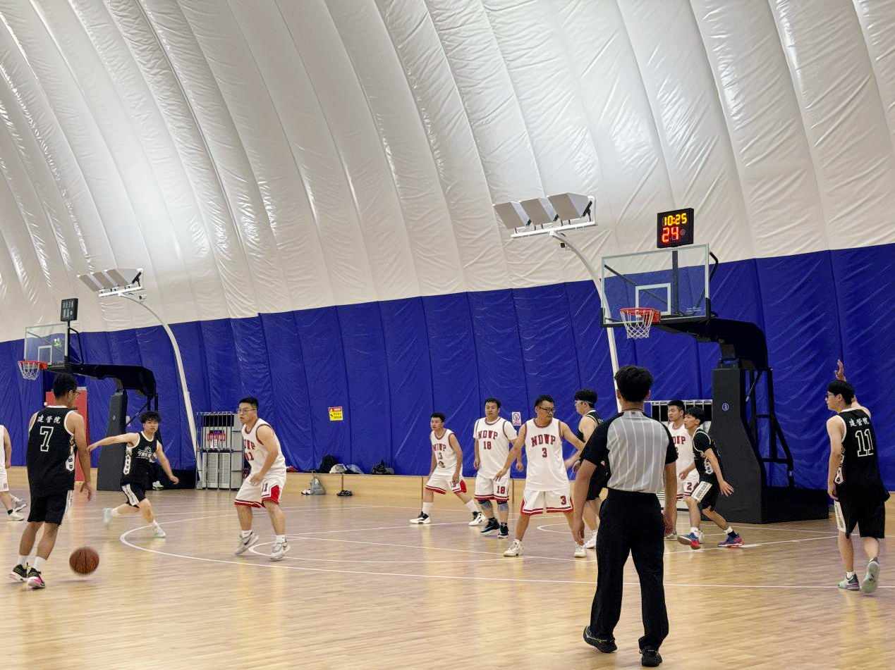 開幕式后,由四支隊伍首先拉開比賽序幕,分別是規(guī)劃院VS建設(shè)管理院,勘察院VS行政智慧院聯(lián)隊。隨著一聲哨響,規(guī)劃院、建設(shè)管理院的兩支隊伍拉開首場對決。一開場,雙方迅速進(jìn)入狀態(tài)。規(guī)劃院隊率先爭奪籃板,順利得分。建設(shè)管理院隊不甘示弱,連攻帶守,幾度猛攻。雙方比分你追我趕,奮起直追。觀眾吶喊此起彼伏,氣氛熱烈。最終,建設(shè)管理院隊穩(wěn)定發(fā)揮、密切配合,以13分的優(yōu)勢打敗規(guī)劃院隊,以37:24的最終成績拿下首場比賽的勝利。