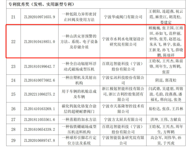 近日,寧波市市場監(jiān)督管理局公布了第三屆寧波市專利創(chuàng)新大賽獲獎(jiǎng)項(xiàng)目名單,我院提交參賽的發(fā)明專利“一種山洪災(zāi)害預(yù)警的方法、系統(tǒng)、電子設(shè)備及存儲介質(zhì)”榜上有名,獲得本次大賽的“專利優(yōu)秀獎(jiǎng)(發(fā)明、實(shí)用新型專利)”。